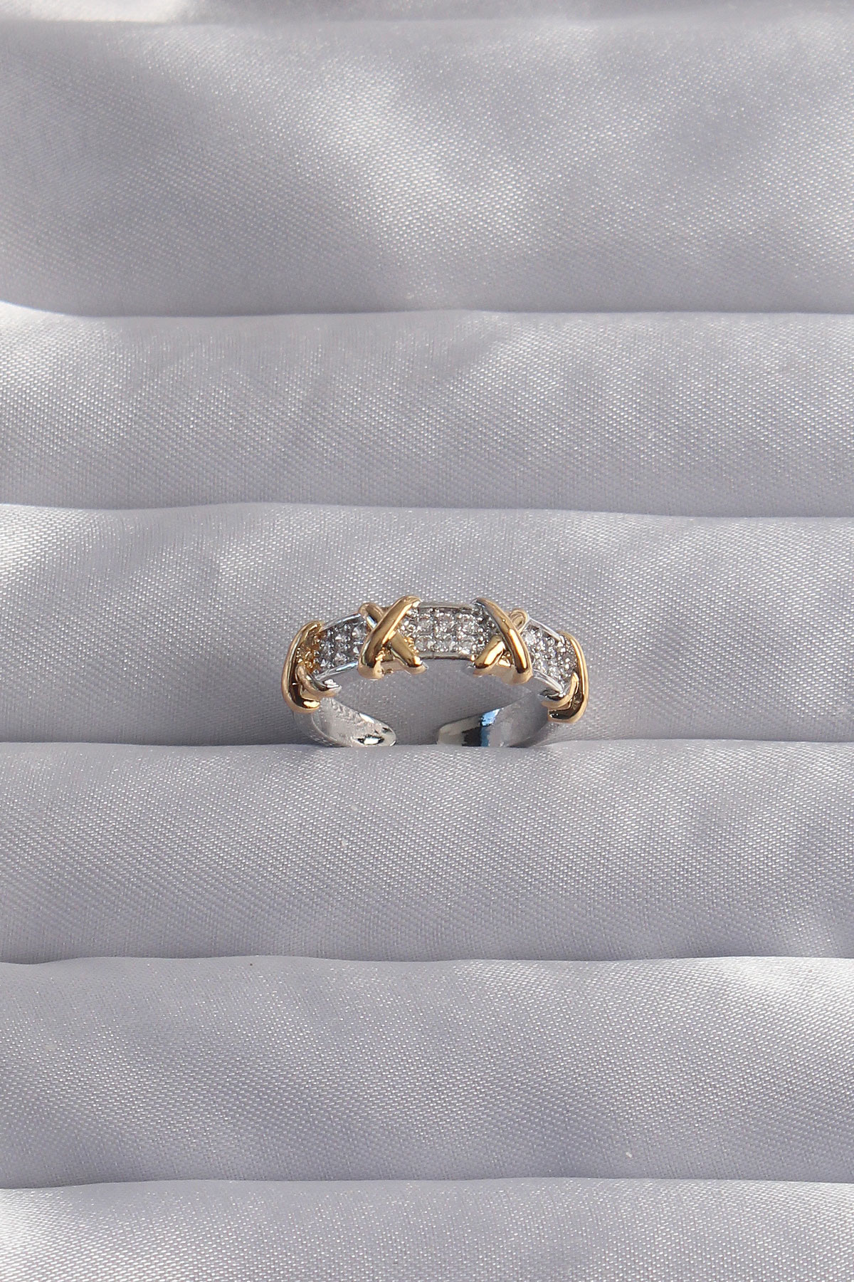 Pirinç Ayarlamalı Gümüş Renk Zirkon Taşlı XOXO Model Yüzük