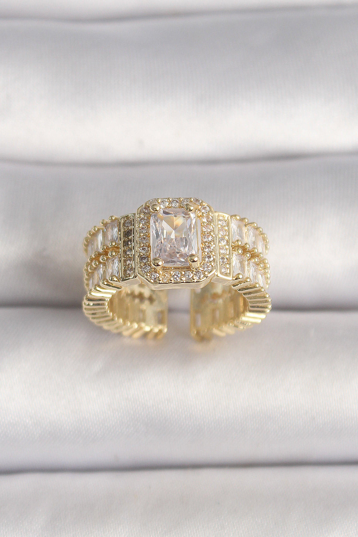 Pirinç Gold Renk Ayarlanabilir Baget Zirkon Taş Model Kadın Yüzük