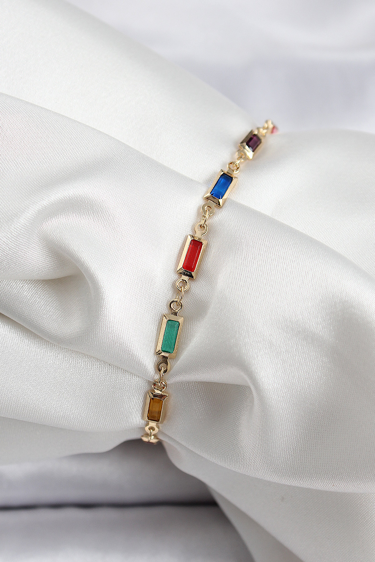 İlk yorum yapan sen ol “Pirinç Gold Renk Karışık Renkli Kare Zirkon Taşlı Kadın Bileklik”