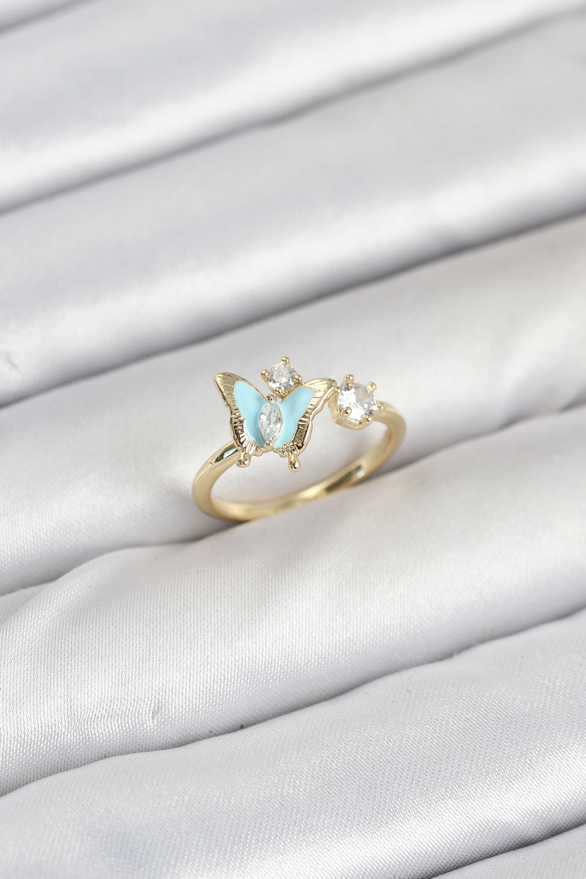 Pirinç Gold Renk Kelebek Model Kadın Yüzük