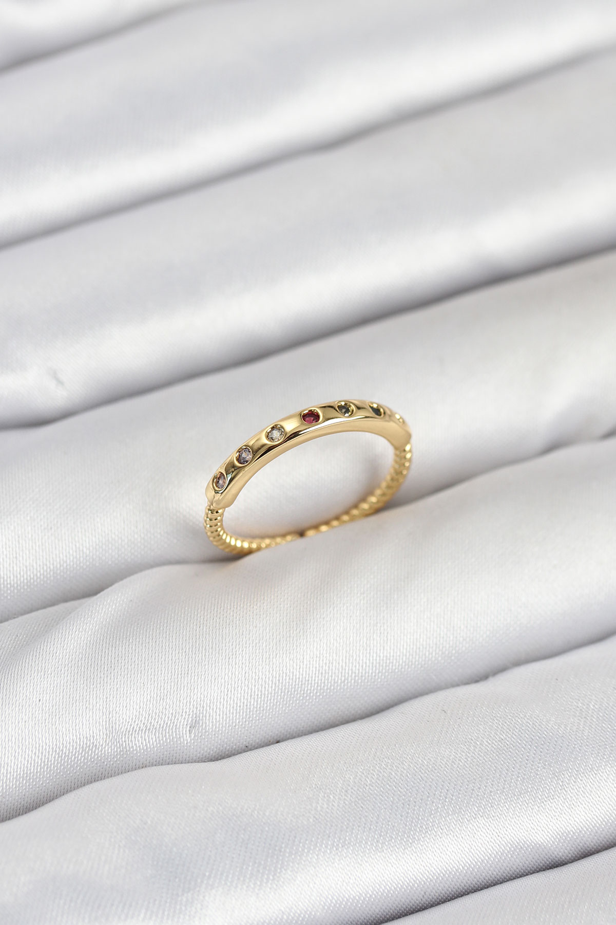 Pirinç Gold Renk Renkli Zirkon Taşlı Kadın Yüzük