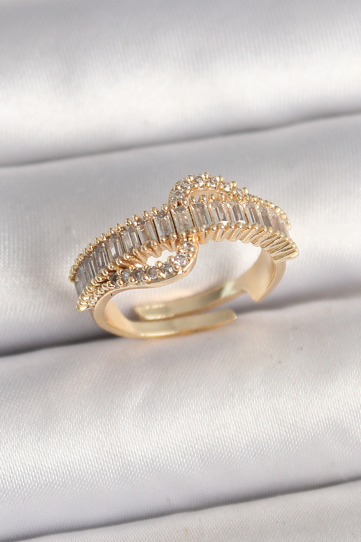 Pirinç Gold Renk Su Yolu Zirkon Taşlı Ayarlanabilir Model Kadın Yüzük