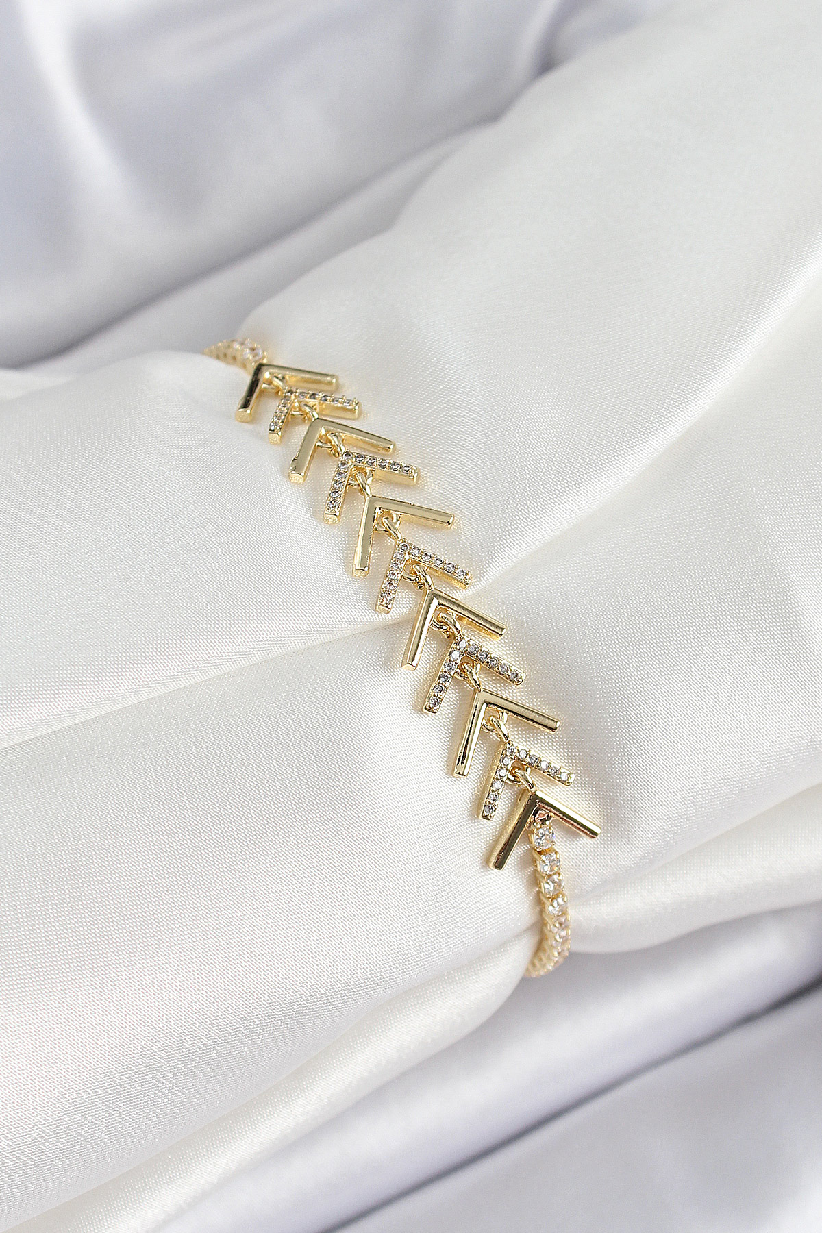Pirinç Gold Renk Zirkon Taşlı Balık Sırtı Kadın Bileklik