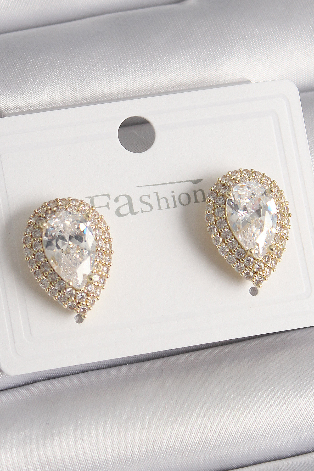 Pirinç Gold Renk Zirkon Taşlı Damla Model Kadın Küpe