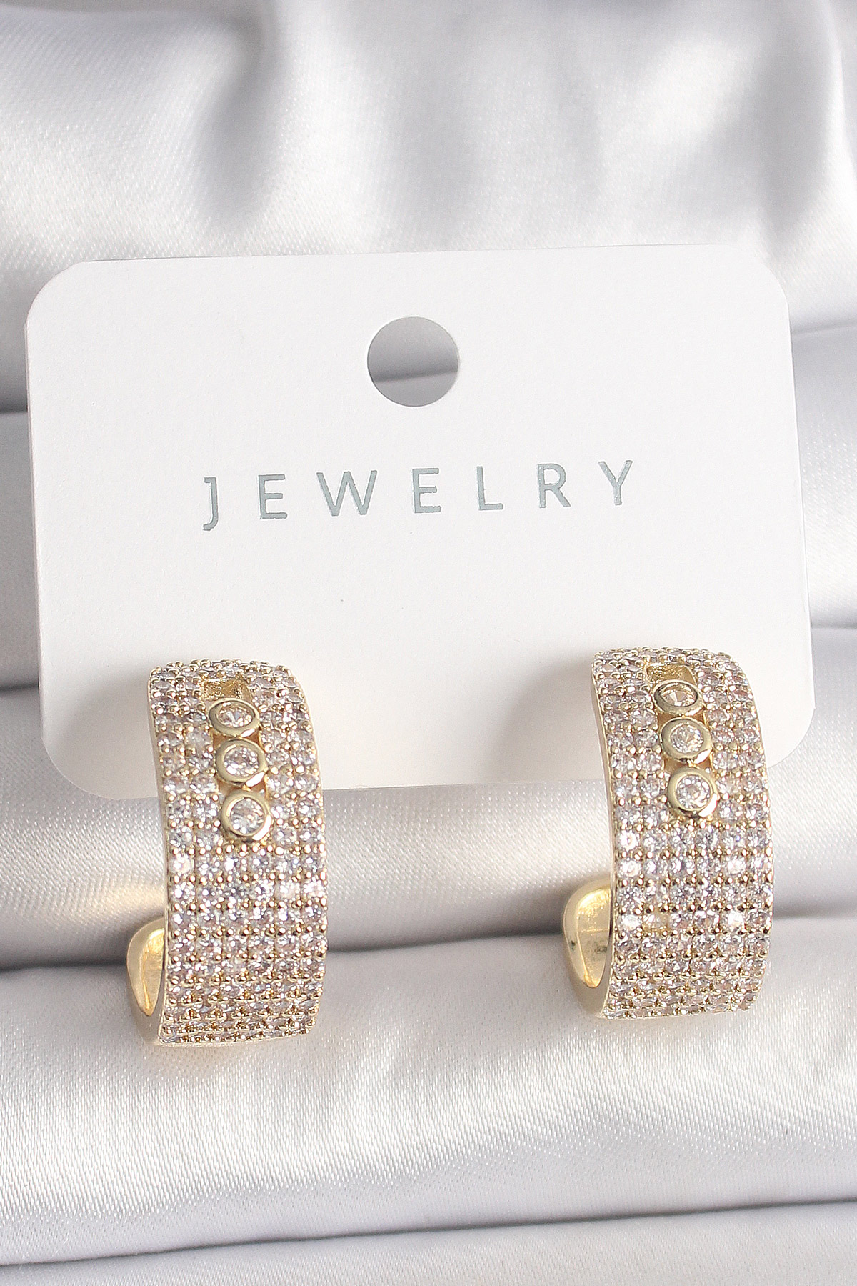Pirinç Gold Renk Zirkon Taşlı Halka Messika Model Kadın Küpe