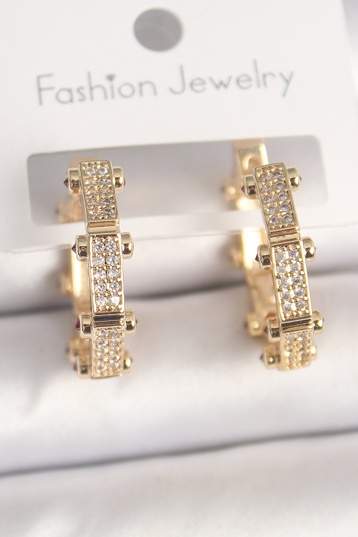 Pirinç Gold Renk Zirkon Taşlı Halka Model Kadın Küpe