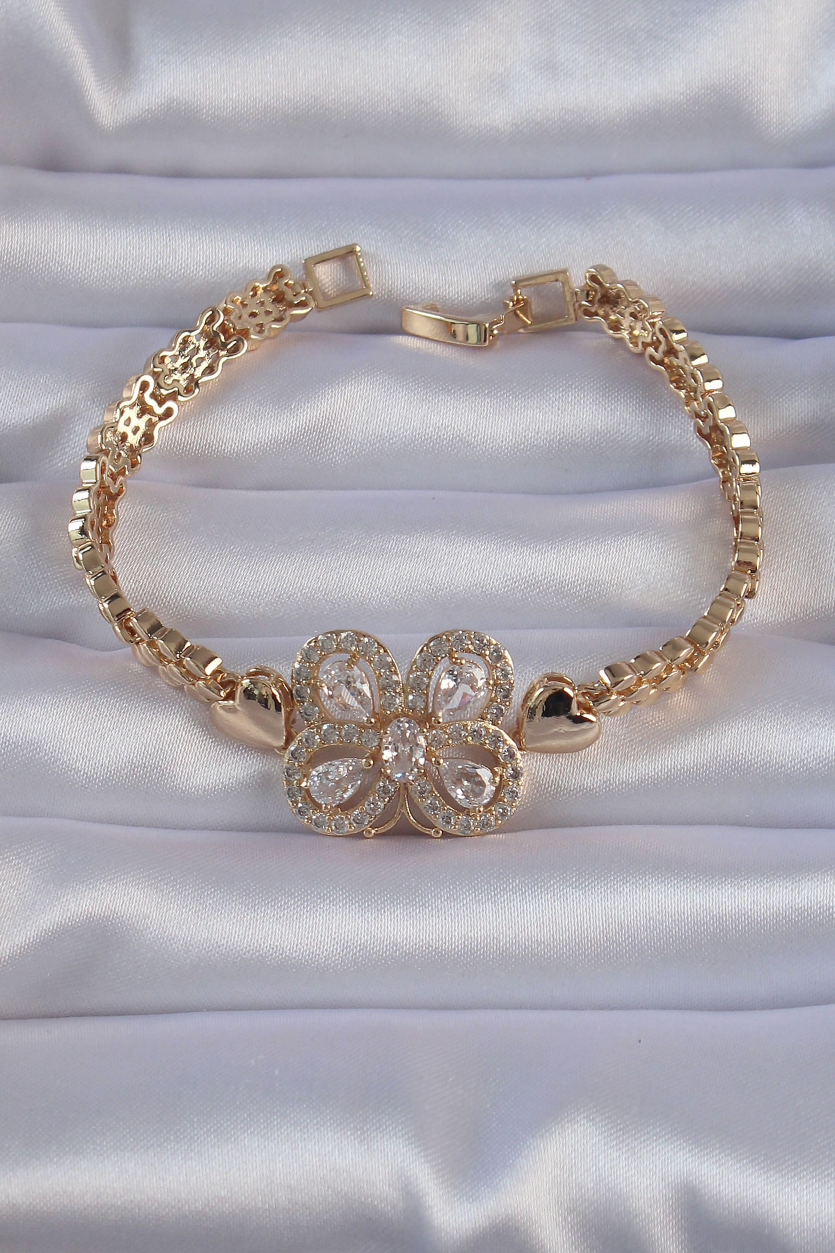 Pirinç Gold Renk Zirkon Taşlı Kelebek Figürlü Parçalı Model Bileklik