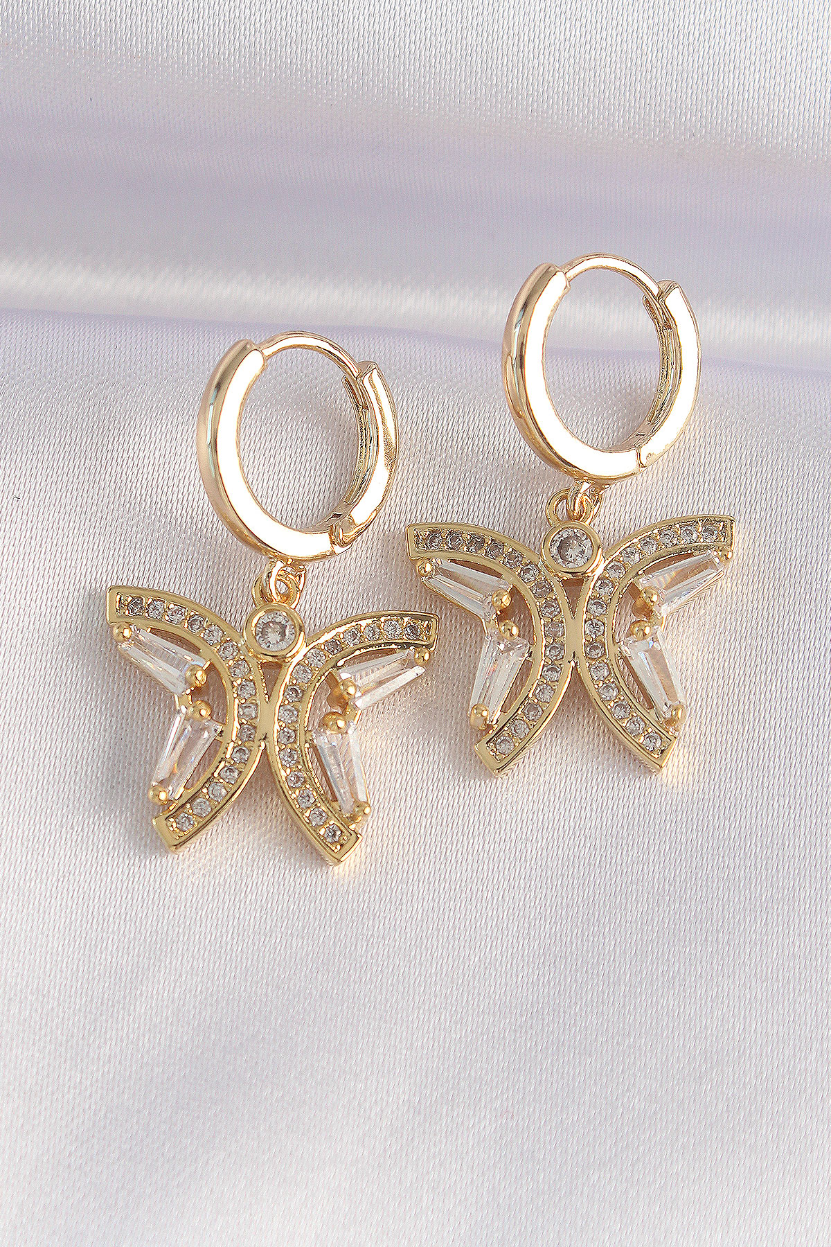 İlk yorum yapan sen ol “Pirinç Gold Renk Zirkon Taşlı Kelebek Tasarım Küpe”