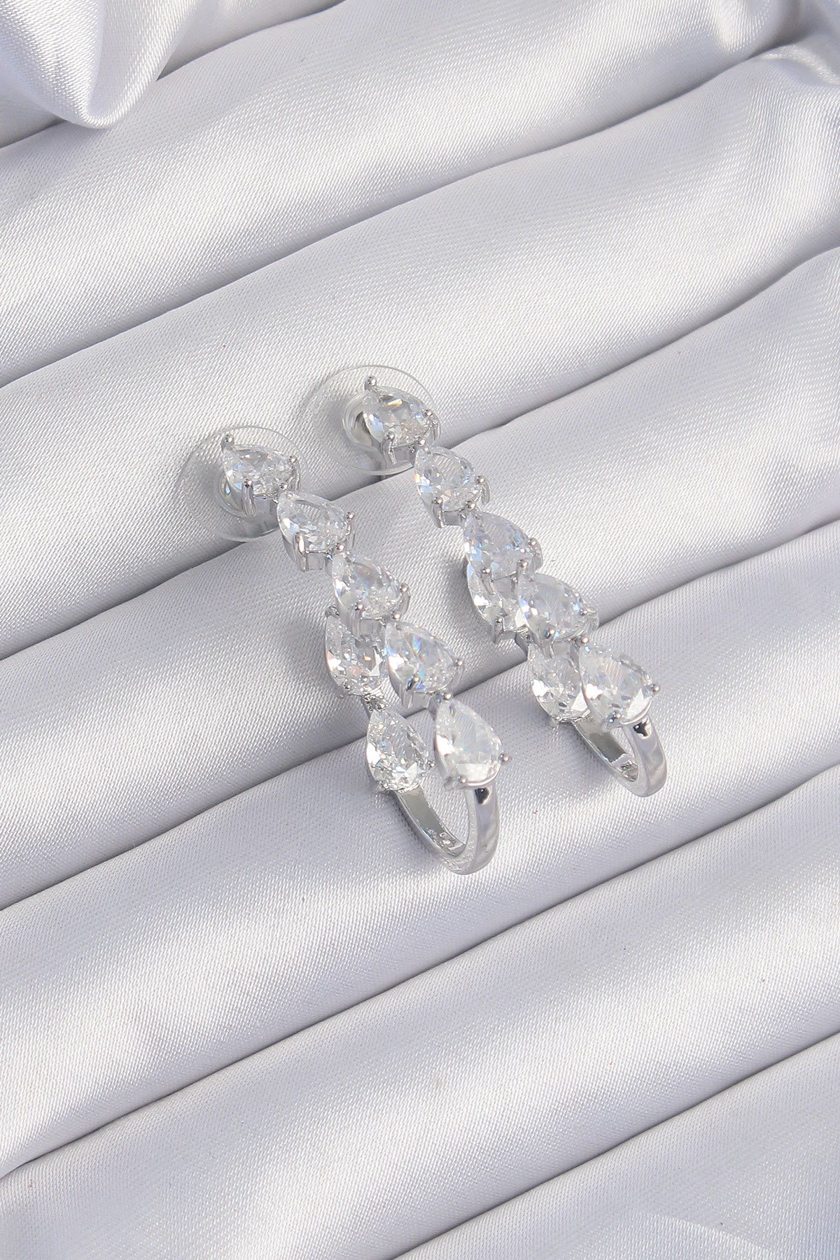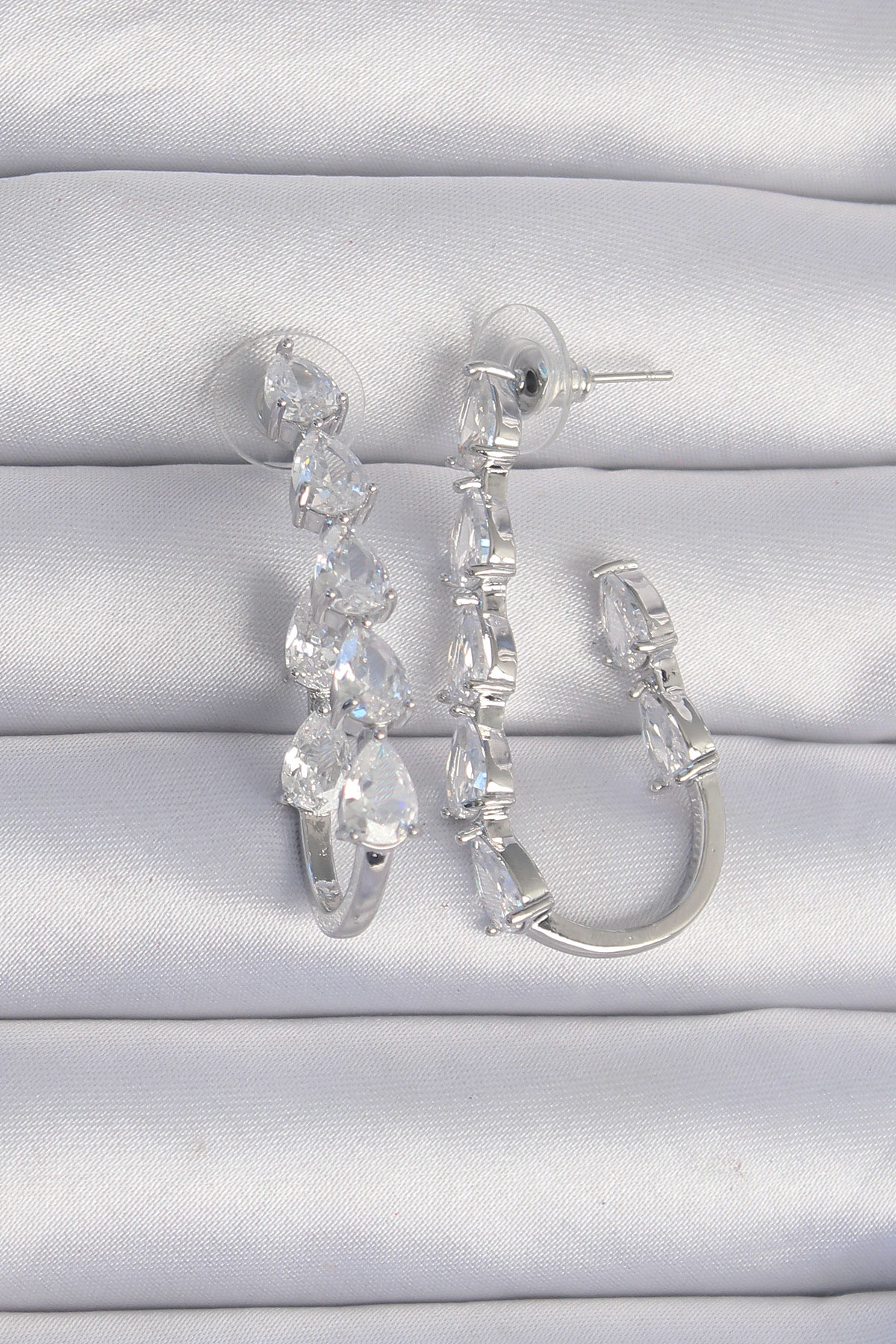 Pirinç Gümüş Renk Damla Zirkon Taş Tasarımlı Küpe
