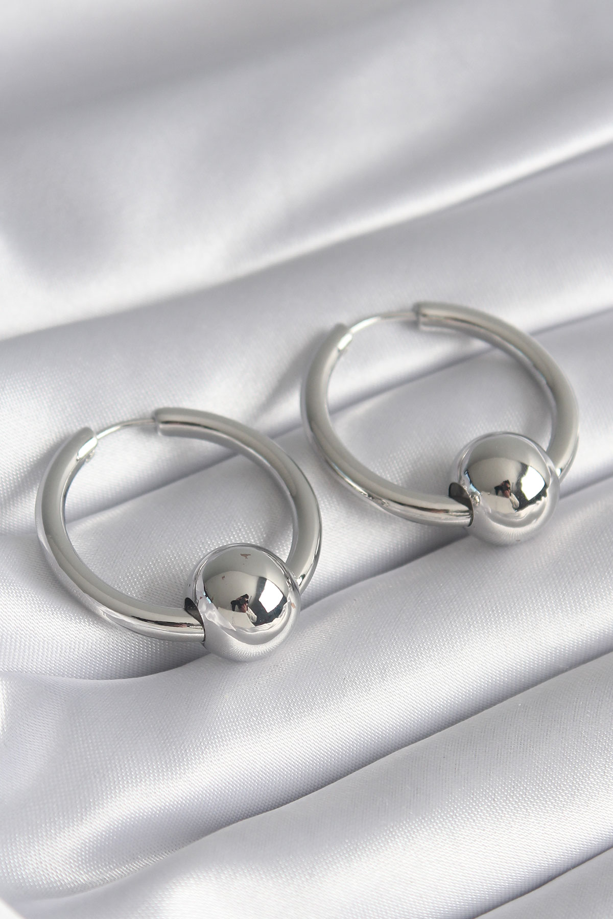 Pirinç Gümüş Renk Halka Top Model Kadın Küpe