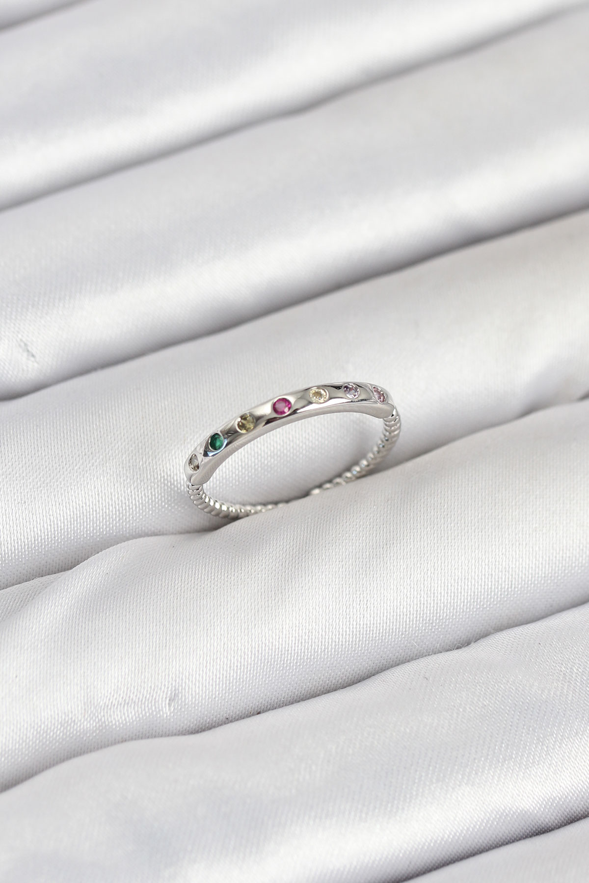 Pirinç Gümüş Renk Renkli Zirkon Taşlı Kadın Yüzük