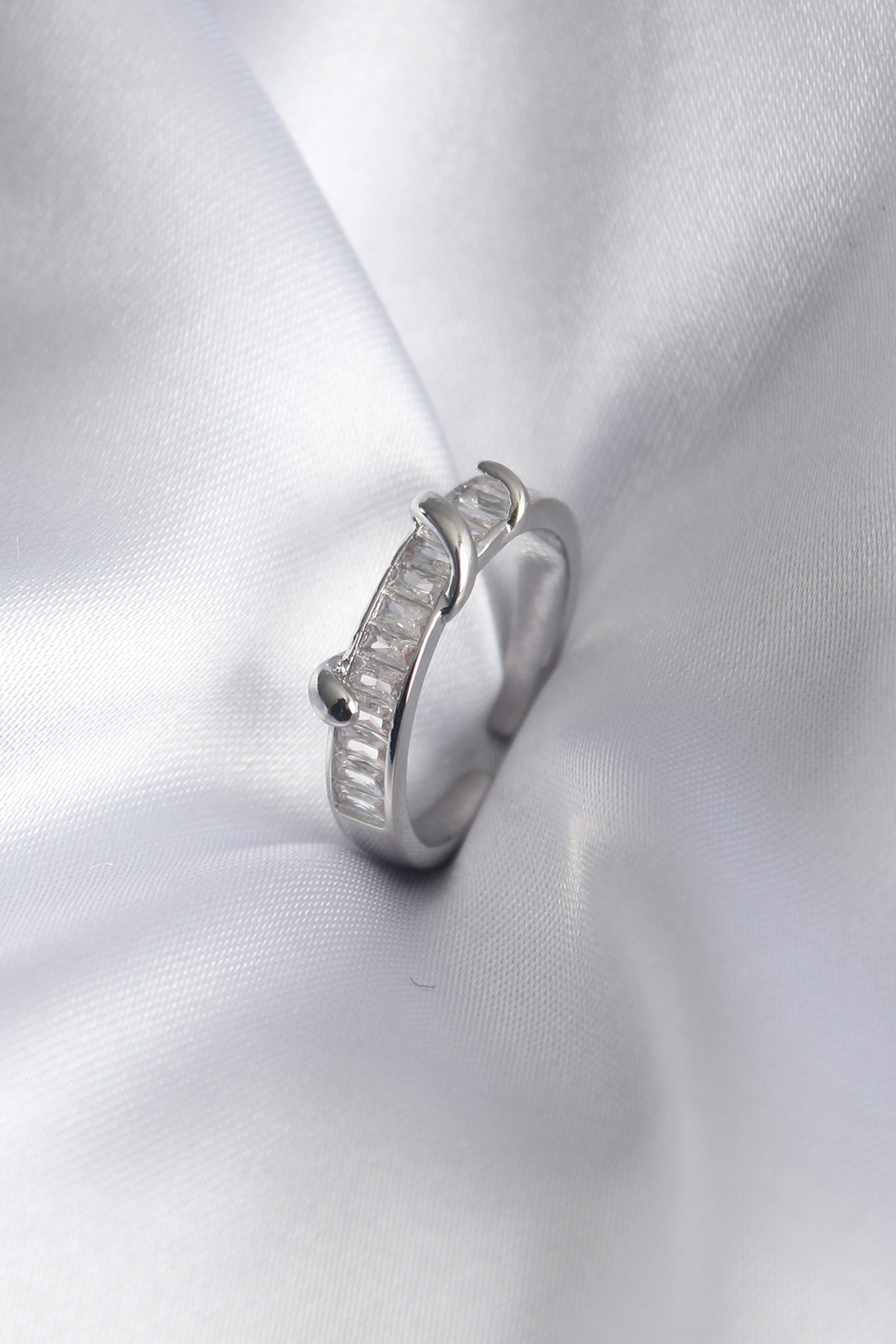 Pirinç Gümüş Renk Su Yolu Zirkon Taşlı Kadın Yüzük