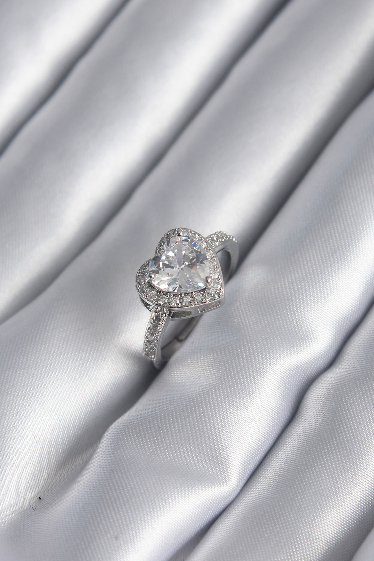Pirinç Gümüş Renk Zirkon Taş Kalp Charm Model Kadın Yüzük