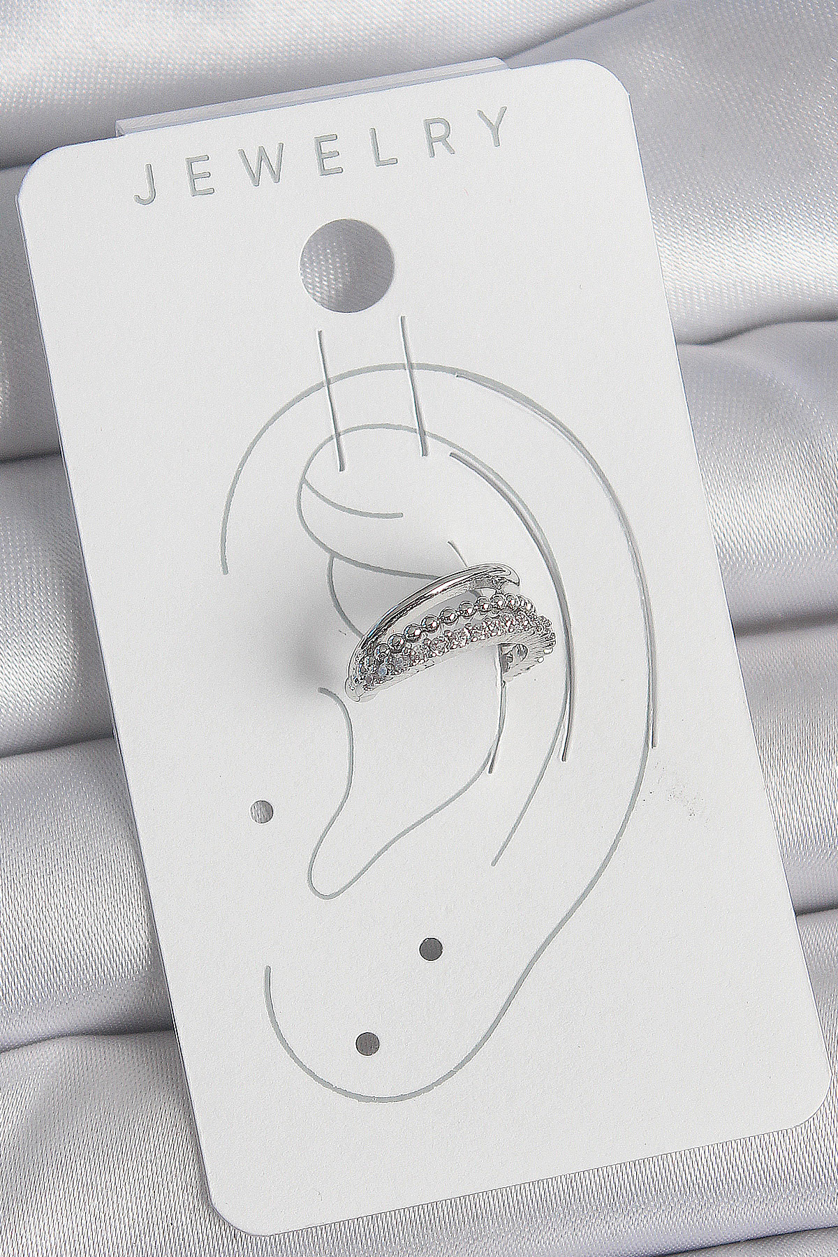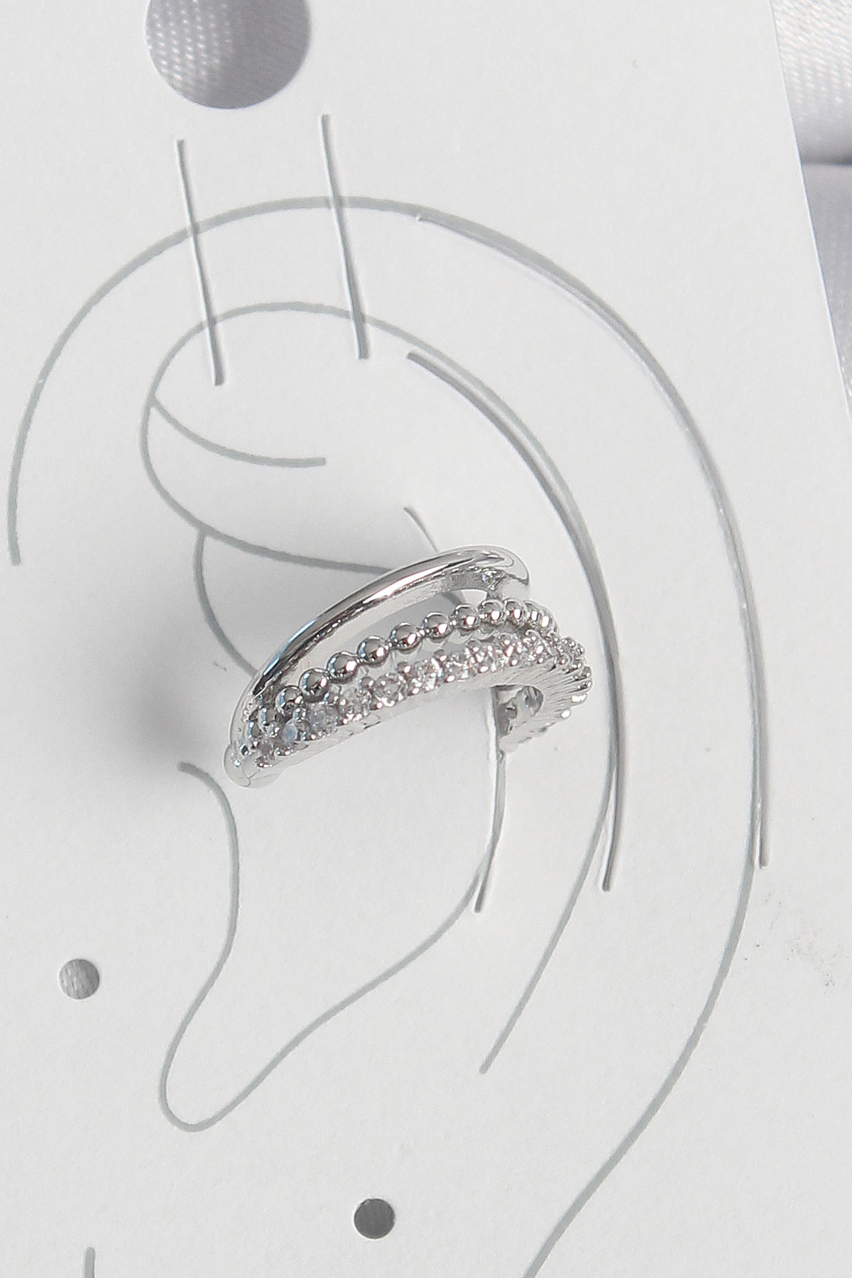 Pirinç Gümüş Renk Zirkon Taşlı 3’Lü Sıralı Kadın Kıkırdak Küpe