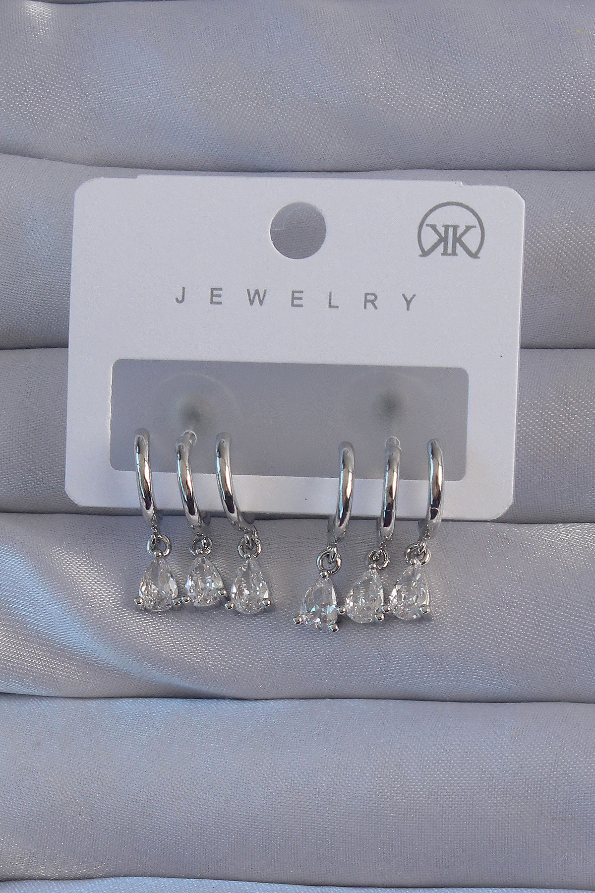 Pirinç Gümüş Renk Zirkon Taşlı Damla Model Çoklu Görünüm Yarım Halka Küpe