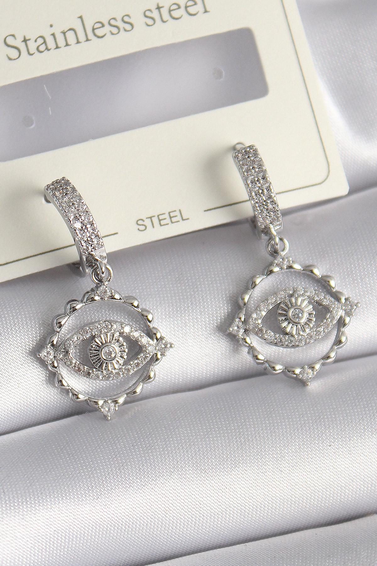 Pirinç Gümüş Renk Zirkon Taşlı Göz Model Kadın Küpe