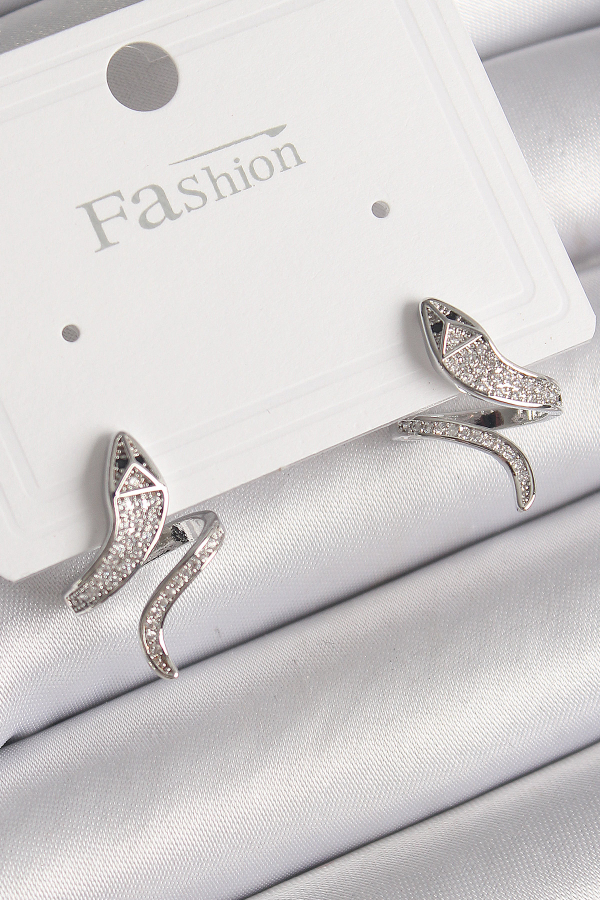 Pirinç Gümüş Renk Zirkon Taşlı Yılan Model Kadın Küpe