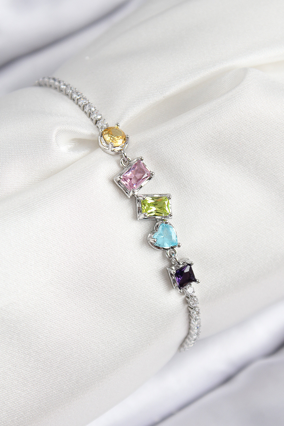 Pirinç Renkli Zirkon Taşlı Geometrik Model Gümüş Renk Kadın Bileklik