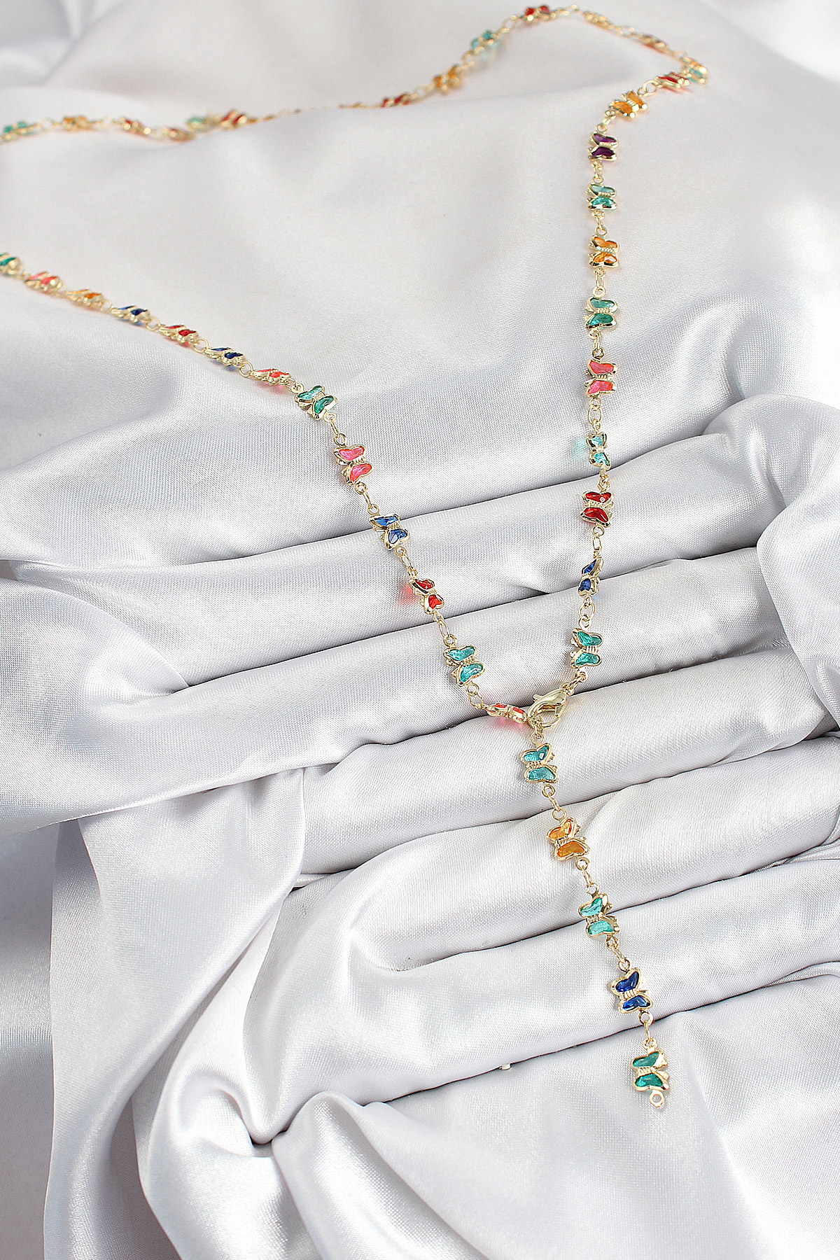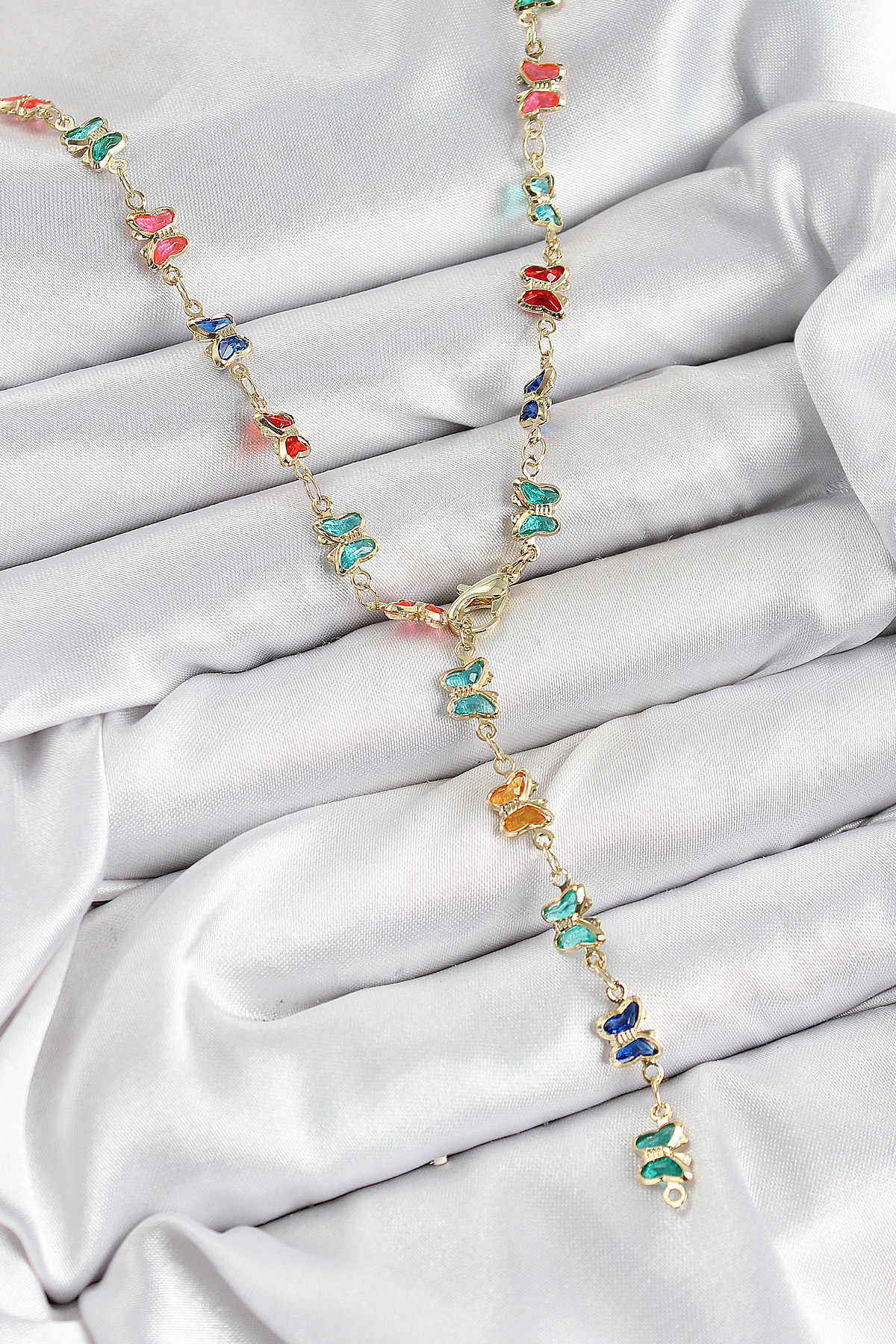 Pirinç Renkli Zirkon Taşlı Kelebek Model Gold Renk Kadın Y Kolye