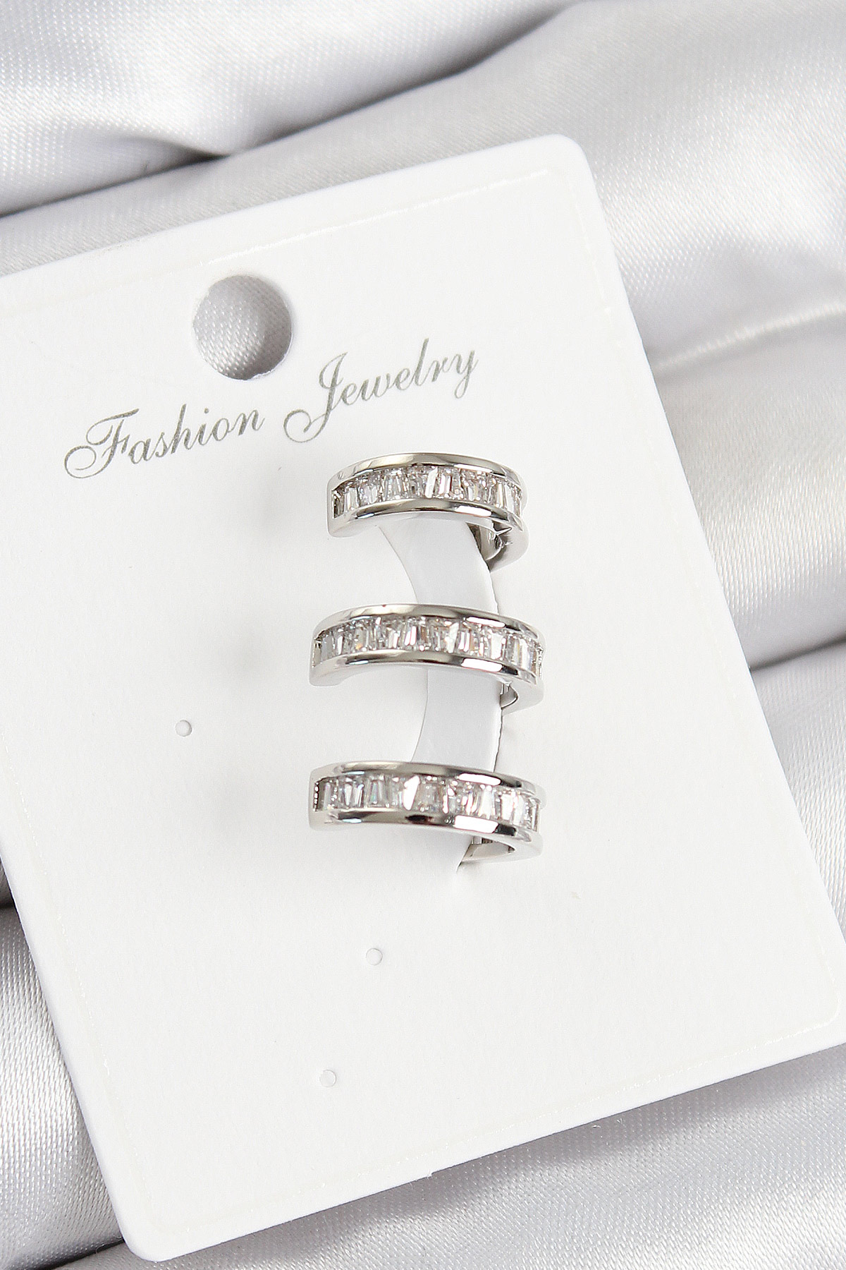 Pirinç Su Yolu Model Gümüş Renk Sağ Kıkırdak Küpe