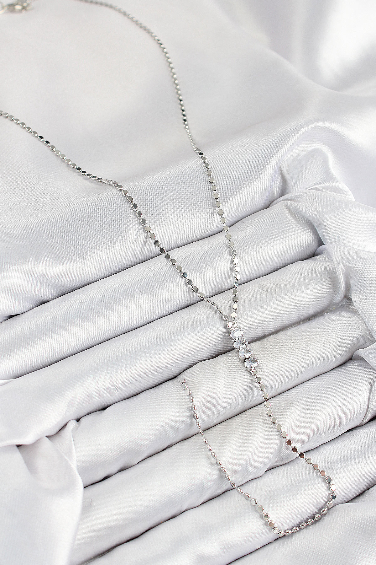 Pirinç Zirkon Taşlı Ezme Zincirli Model Gümüş Renk Y Kolye