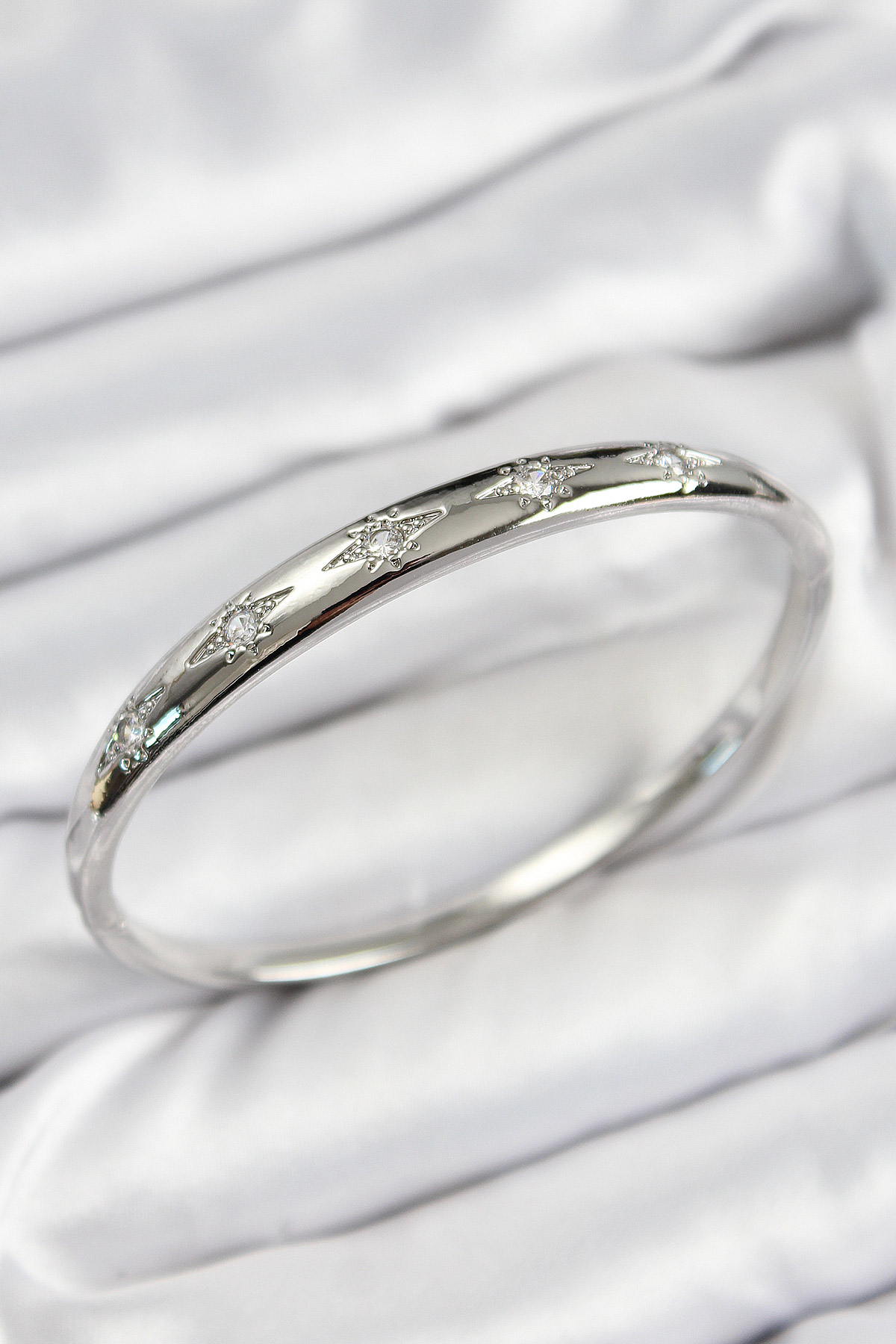 Pirinç Zirkon Taşlı Kutup Yıldızı Model Gümüş Renk Kadın Kelepçe
