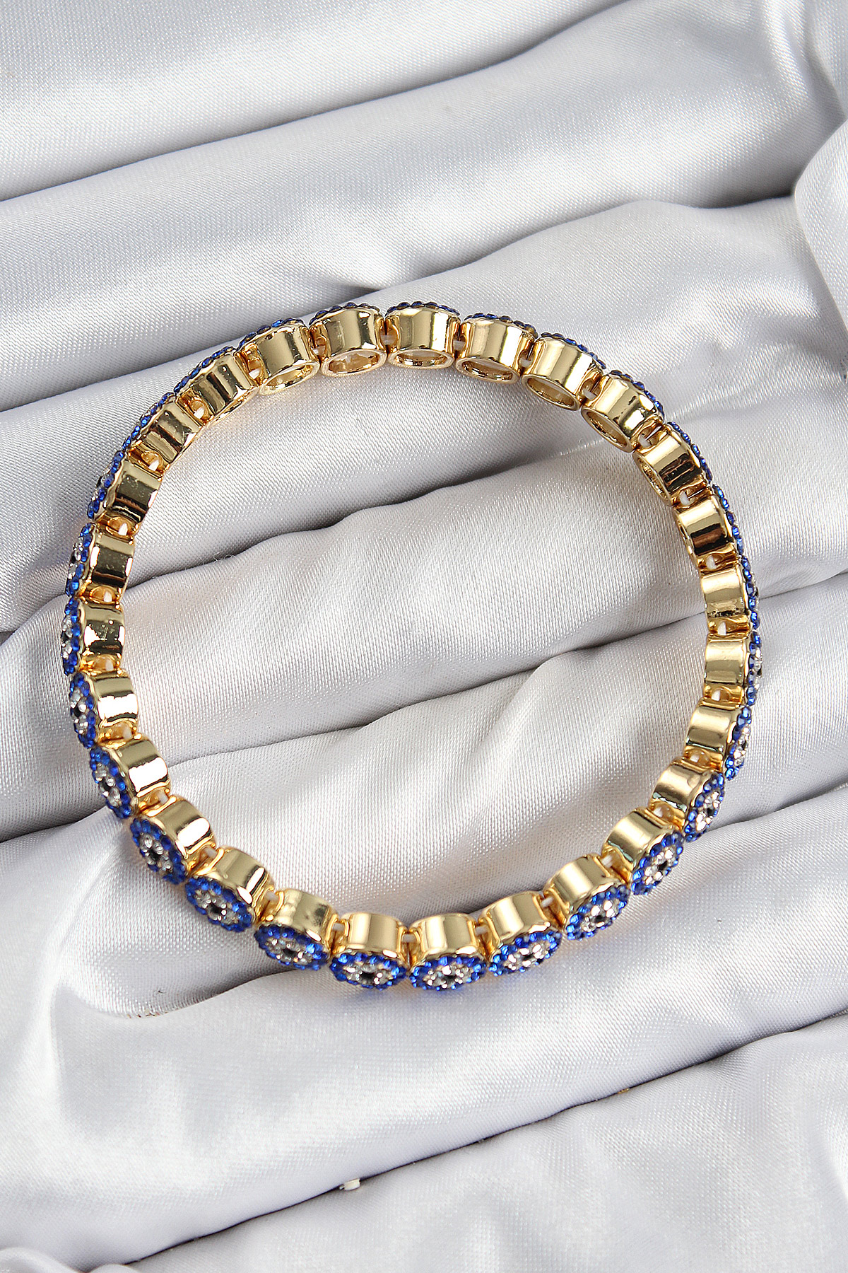Pirinç Zirkon Taşlı Lacivert Nazar Model Gold Renk Lastikli Kadın Bileklik