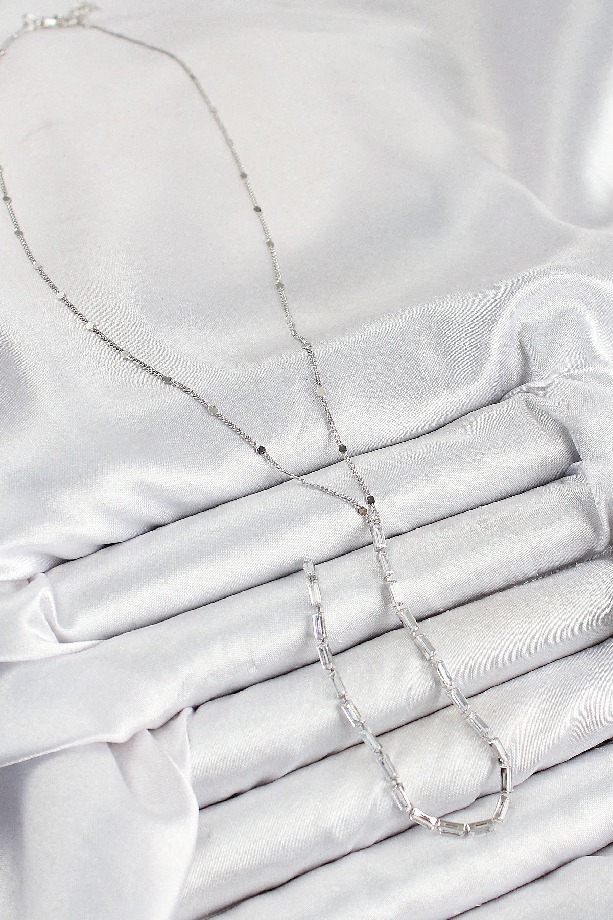 Pirinç Zirkon Taşlı Model Gümüş Renk Y Kolye