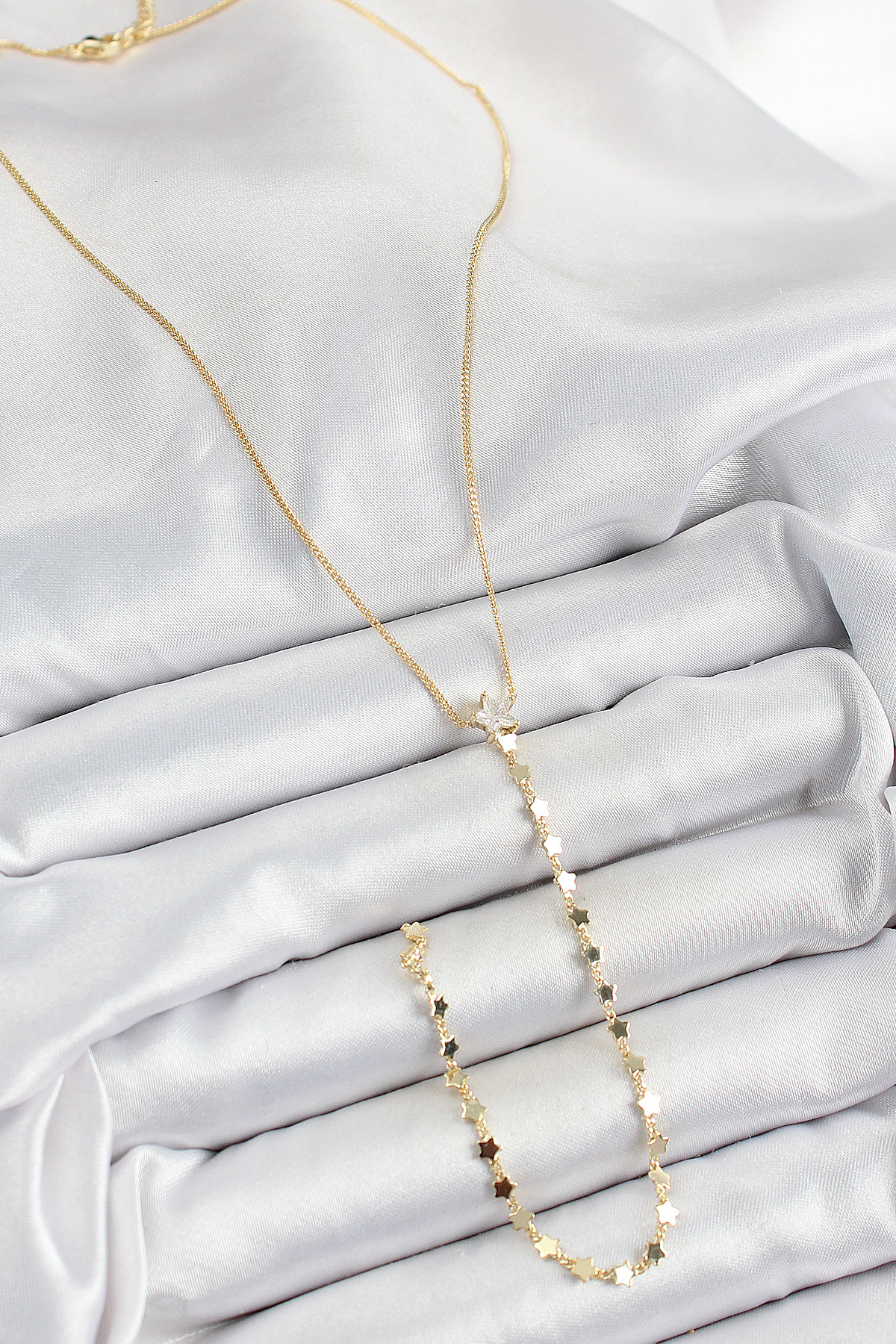 Pirinç Zirkon Taşlı Yıldız Figürlü Y Model Gold Renk Kadın Kolye