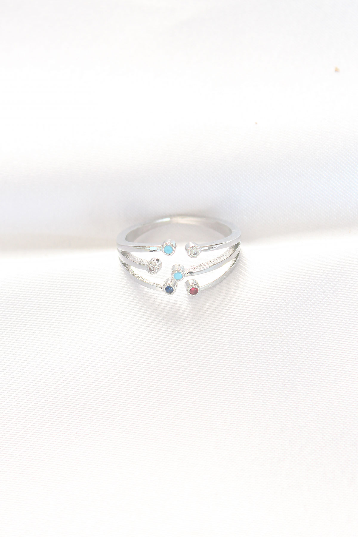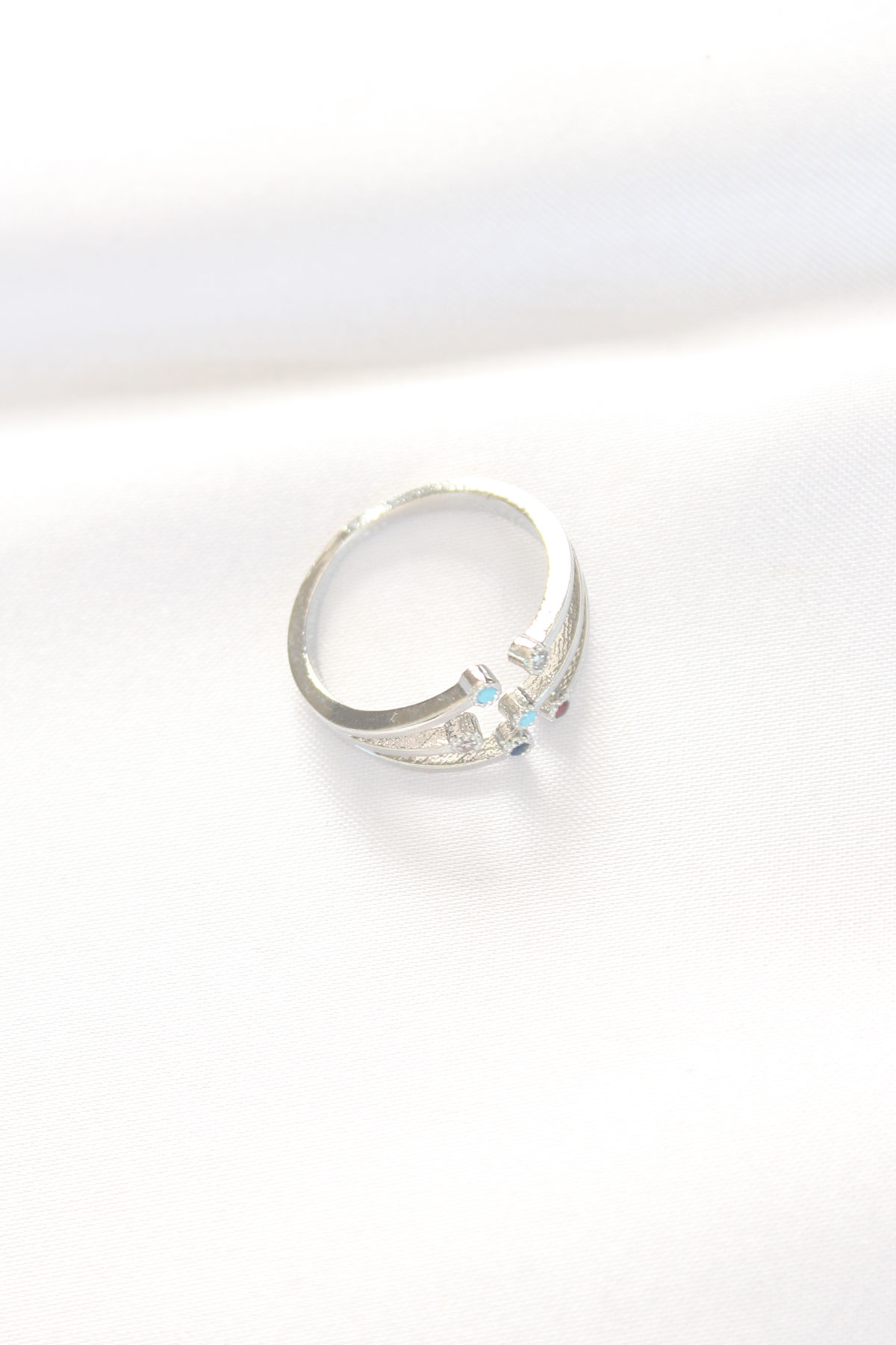 Renkli Zirkon Taşlı Silver Renk Ayarlanabilir Yüzük