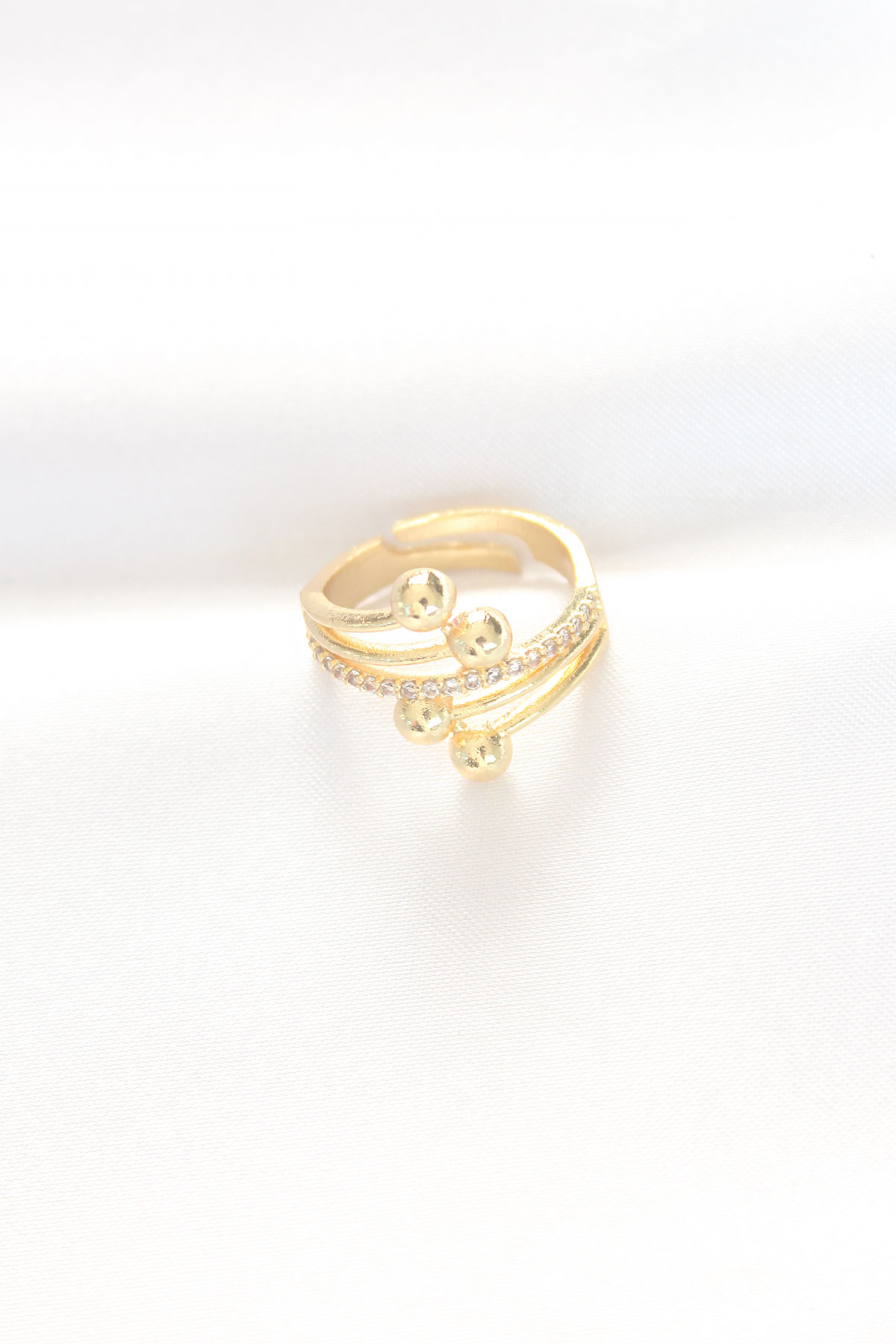 Topçuk Model Zirkon Taşlı Gold Renk Ayarlanabilir Yüzük