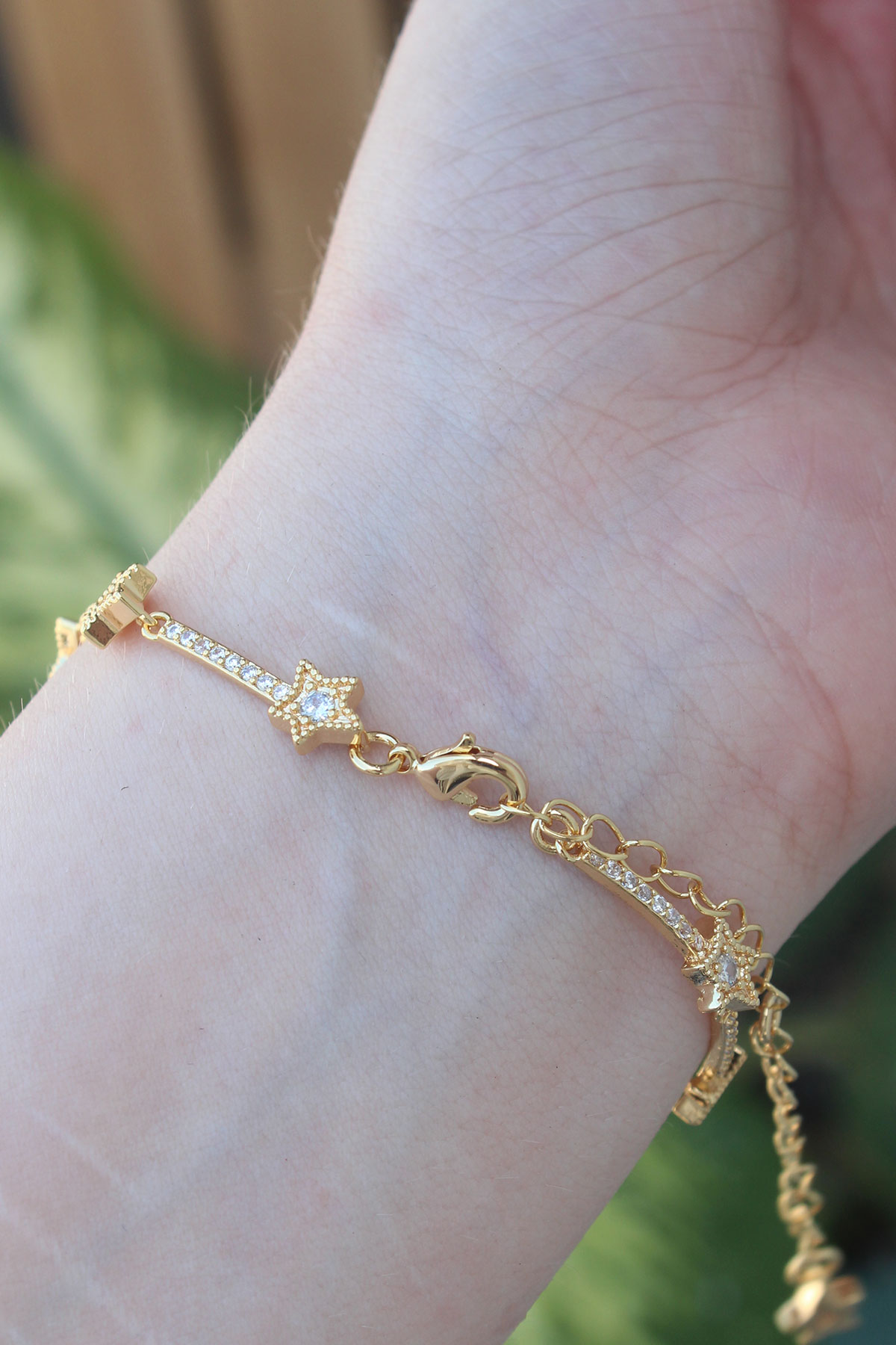 Vip Seri Pirinç Zirkon Taşlı Gold Renk Halley Model Bileklik
