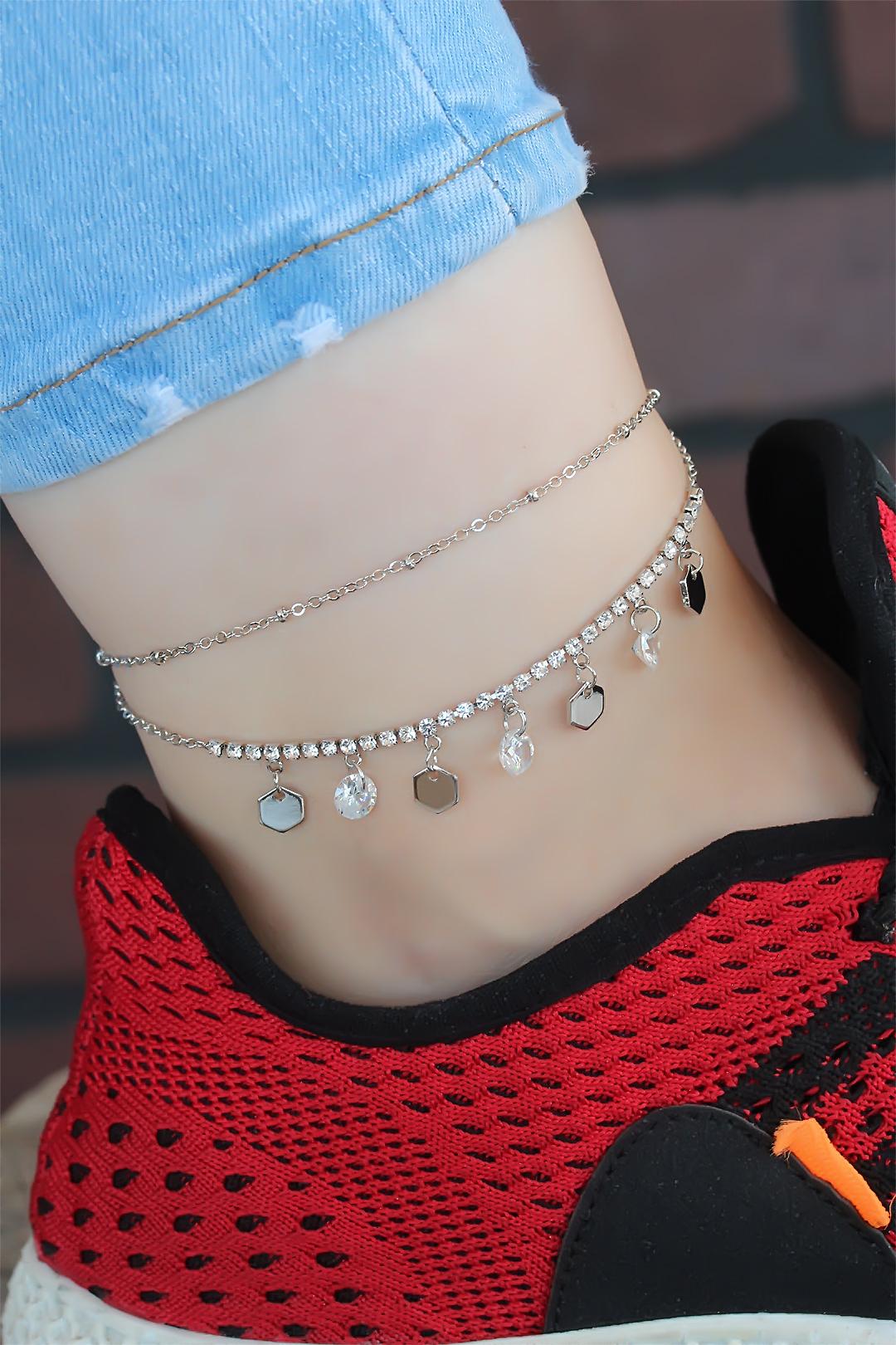 Zirkon Taşlı Silver Renk Kaplama Kalpli Hal Hal